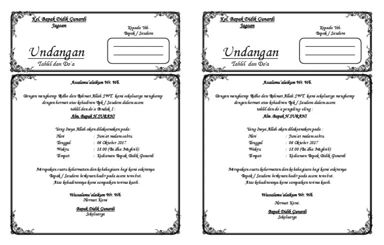 Download undangan 1 lembar jadi 2 doc bisa di edit opera timur. Undangan tahlil ( 1 lembar isi 2 ). Dengan membuat undangan di microsoft word,. Kalo mau buat undangan tahlil tinggal download trus edit trus print dehh. Ukuran tersebut seperti 1 lembar jadi 2 undangan, lipat 3 format doc, .
